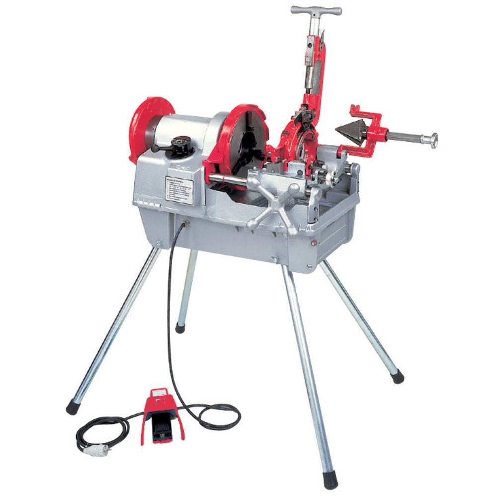 Threading machine REX 150A 2 1/2″-6″ (full set) 366500 Type : 6″ Japanese REX 150A sharpening machine Brands : REX Origin : Japan Category : Grinding and grooving machines Pipe threading machine from 2.5 inches to 6 inches, 750 Watt, Japanese REX, model 150A We apologize to all customers for any sudden change in The REX 150A 2 1/2″-6″ (full set) 366500 threading machine has enough power to cut large diameter pipes. With additional equipment, it can be used for metric threads. The machine is supplied with cutting oil. A gearbox for two-speed cutting is installed. Technical characteristics of the threading machine REX 150A 2 Voltage 220 V Thread cutting range (G/BSPP) G2 1/2-G6 Spindle speed 18 rpm Drilling mode No Net weight 170 kg Dimensions without packaging 930 x 680 x 590 mm Advantages of the threading machine REX 150A 2 Low noise capacitor motor, Energy-saving two-speed gearbox REX 150A 2 1/2″-6″ 366500 speeds up work, Powerful hammer chuck securely holds large diameter pipes, Easy adjustment of thread size and length, Ultra-fine adjustment of thread diameter, The low resistance groove cutting head enables optimum cutting on large diameter pipes.