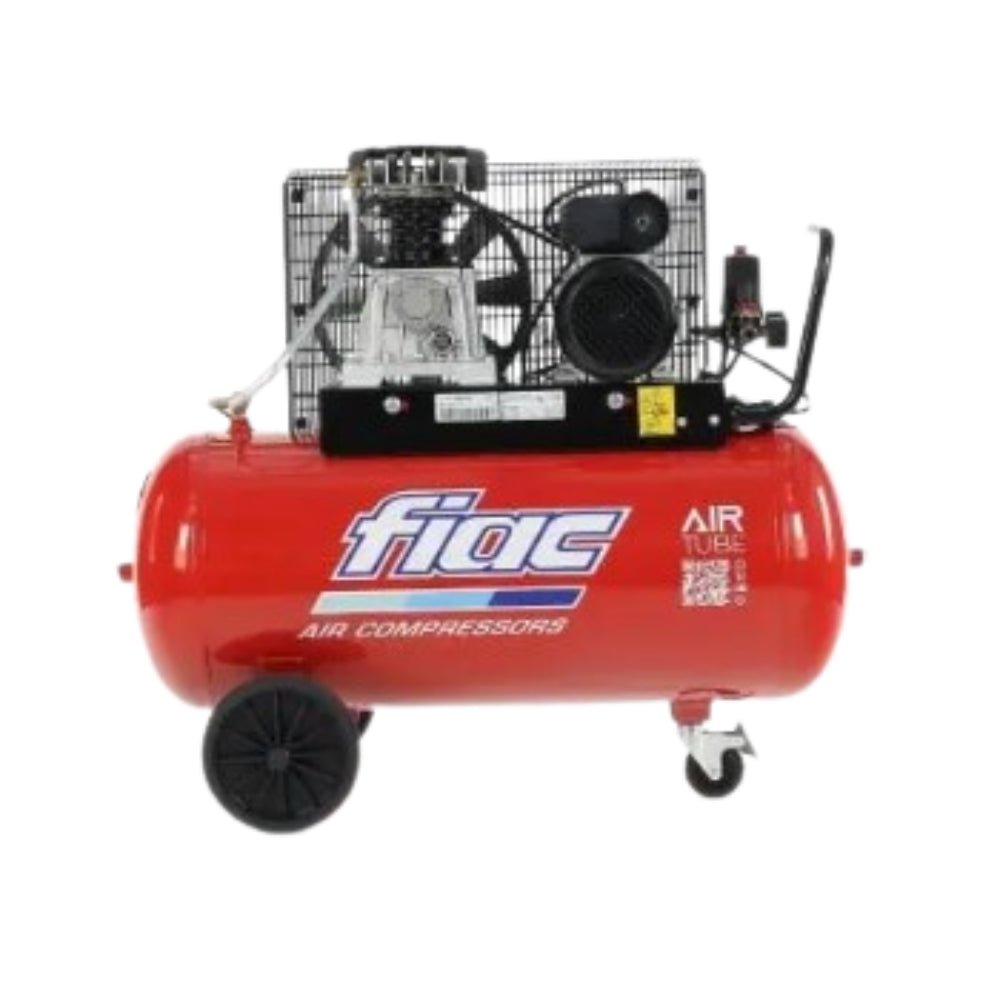 FIAC AB 100/268 – 2Hp – Mobile – 10bar – 1Ph • Max Pressure (bar) – 10 • Vessel size (lt) – 90 • Air Displacement (l/min) – 250 • Motor (hp) – 2 The FIAC AB 100/268 – 2Hp – Mobile – 10bar – 1Ph is a professional lubricated belt driven compressor single stage, equipped with pump model AB268 with two-cylinders made of cast iron, with a vessel size of 100 liters. It ensures high performance at a low rotation speed, which helps prevent engine overheating and significantly extends the compressor’s lifespan. FIAC’s new single stage range represents a noteworthy improvement in technology, keeping the focus on performance and value. All FIAC pumps are equipped with large oil level indicator, oil dipstick and large flywheel for better cooling. Steel belt guard for a better protection also during transportation. Specification Value Weight 59 kg Width 5020 cm Height 8620 cm Length 9810 cm