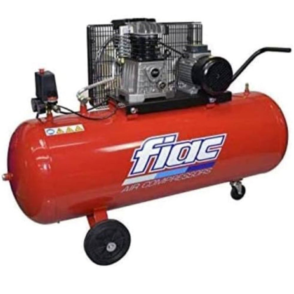 FIAC AB 150/268 – 2Hp – Mobile – 10bar – 1Ph The FIAC AB 150/268 – 2Hp – Mobile – 10bar – 1Ph is a professional lubricated belt driven compressor single stage, equipped with pump model AB268 with two-cylinders made of cast iron, with a vessel size of 150 liters. It ensures high performance at a low rotation speed, which helps prevent engine overheating and significantly extends the compressor’s lifespan. FIAC’s new single stage range represents a noteworthy improvement in technology, keeping the focus on performance and value. All FIAC pumps are equipped with large oil level indicator, oil dipstick and large flywheel for better cooling. Steel belt guard for a better protection also during transportation. Specification Value Weight 78 kg Width 400 cm Height 800 cm Length 1500 cm Specification Value Max Pressure (Bar) 10 Bar Max Pressure (Psi) 145 PSI Pump speed 1240 Rpm Vessel size (lt) 150 Liter Vessel size (gal) 40 Gal Configuration Mobile Air Displacement (l/min) 250 l/min Air Displacement (cfm) 8.8 Cfm Lubrication Oil Lubricated Oil capacity 0.45 Liter Pump Element AB268 Motor (hp) 2 Hp Motor (kw) 1.5 kW Supply voltage 230 V Frequency 50 Hz Number of phases 1 Noise Level (LPA) 72 dB(A) Noise Level (LWA) 92 dB(A)