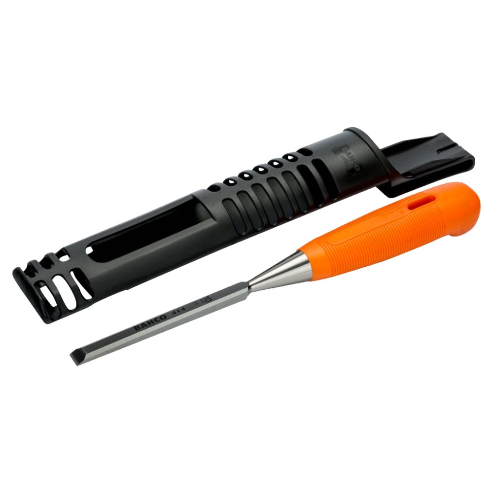 424P مكدة خشابى يد بكاليت 6 مم أسبانى 12 Woodworking Chisels with Rubberised Handle PRODUCT DETAILS Specially designed two-component handle maximizes control and comfort, giving an excellent grip Precision ground blade for maximum sharpness Varnished blade for increased rust resistance Hardened and tempered high quality steel for long lasting performance with 4 mm to 40 mm (5/32″ to 1-9/16″) size range Protective holster and tip protector included Perfect for fine carpentry Standards: ISO 2729