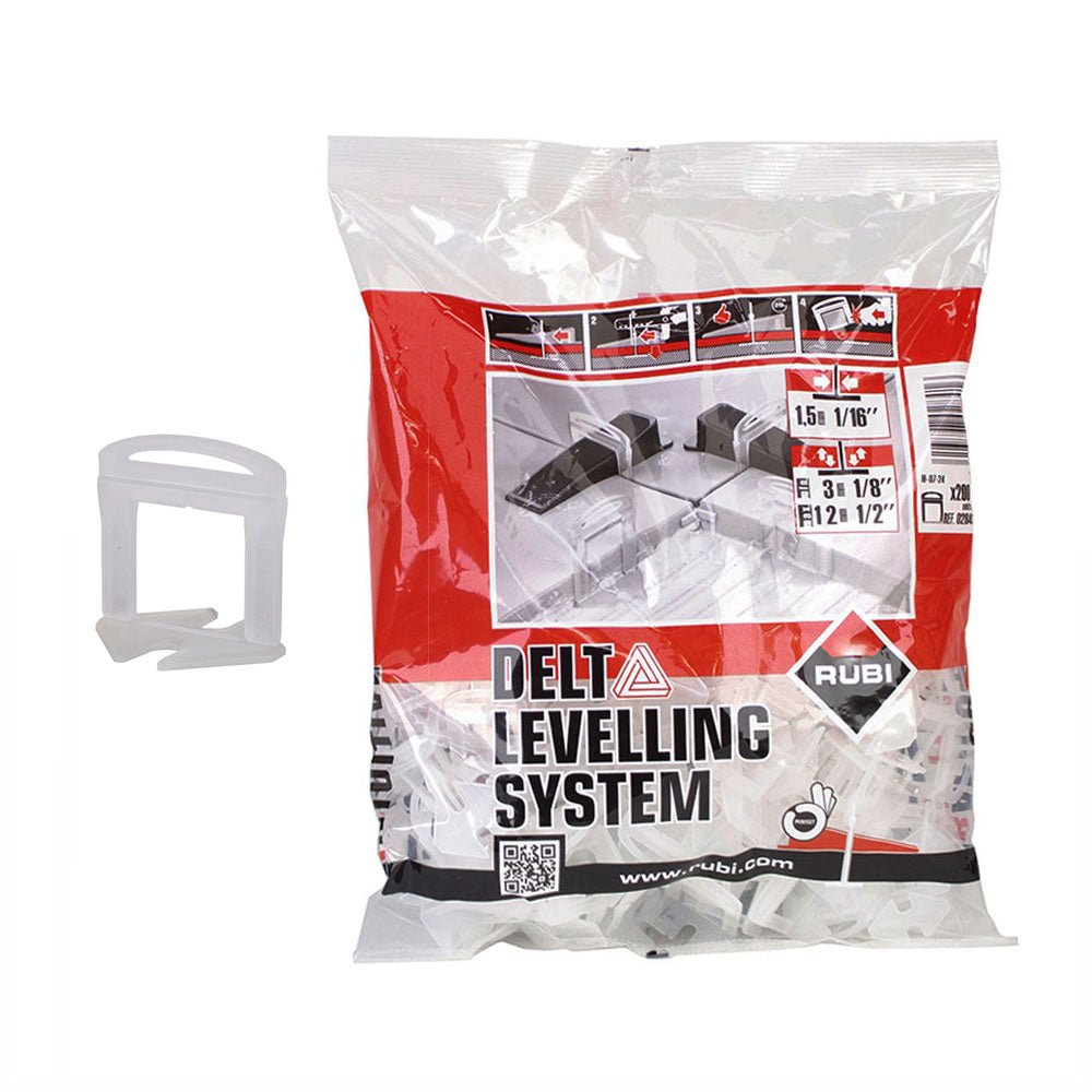 DESCRIPTION The main function of the RUBI DELTA LS leveling system is to avoid the creation of installation eyebrows during the installation of ceramic tiles, both on floors and walls. The DELTA LS leveling system also prevents the movement of the tiles during the setting of the adhesive and, during installation, the number of corrections in the position of the ceramic tile itself is reduced. The basic principle of the DELTA LS leveling system is that of pressing the highest piece, until matching its position with the adjacent tiles, thus obtaining a substantial improvement of the surface flatness. The leveling system DELTA LS of RUBI is a system of wedges and flanges, recommended for formats of 30×30 cm or greater and varied thicknesses of up to 12, 15 or 20 mm, depending on the model of flange used. The use of the RUBI DELTA LS leveling system is fast, easy and intuitive. Once the installation is complete, the elements of the system are removed by impact (kick or mace), striking the flanges always in the direction of the joint. The DELTA LS leveling system wedges can be reused several times. The RUBI DELTA LEVEL SYSTEM clamp is designed to be used both in installation work of horizontal (floor) and vertical (cladding) ceramic tiles. The main function of the RUBI DELTA LS leveling clamp is to give the wedge the necessary pressure to allow the leveling of the ceramic tile; thus obtaining a homogeneous resulting flatness. In the design of all RUBI products, the entire RUBI R &