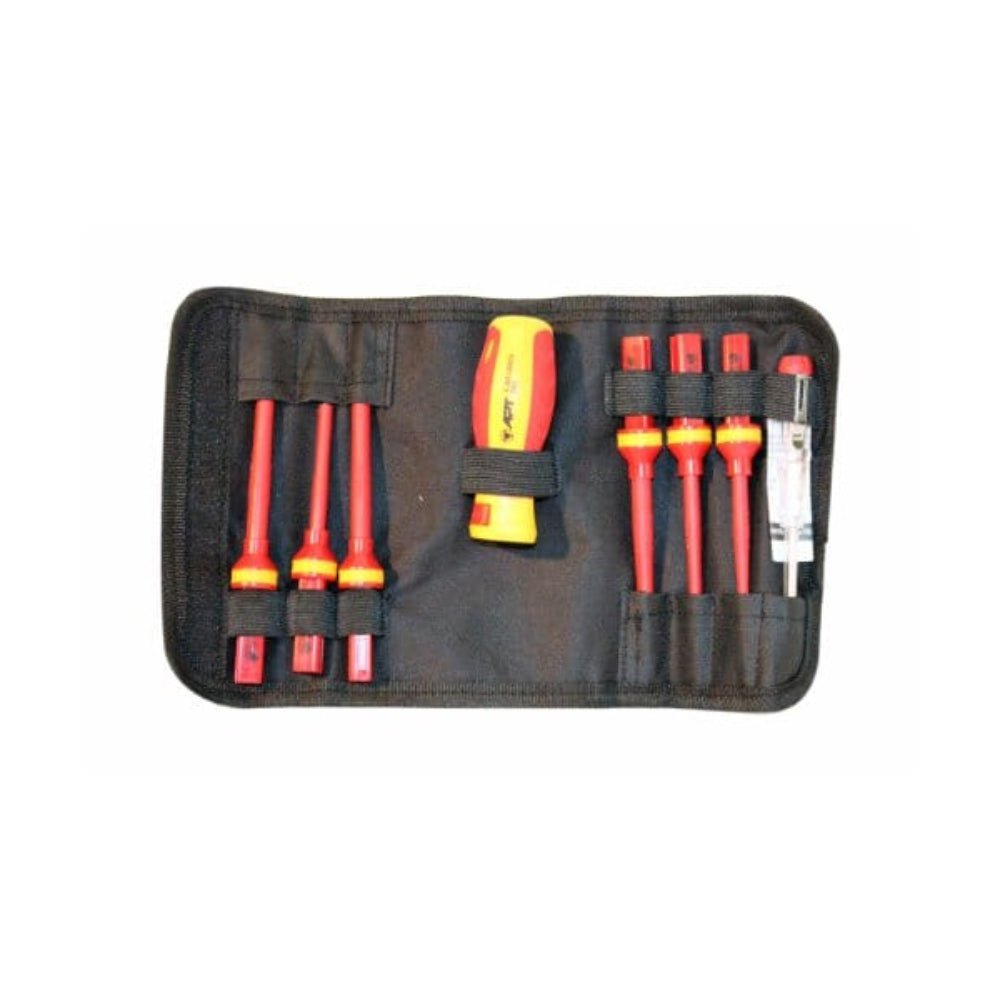 طقم 6 مفكات عازل 1000 ف+ يد متغيرة + مفك تيست جيب 8 قطع صينى