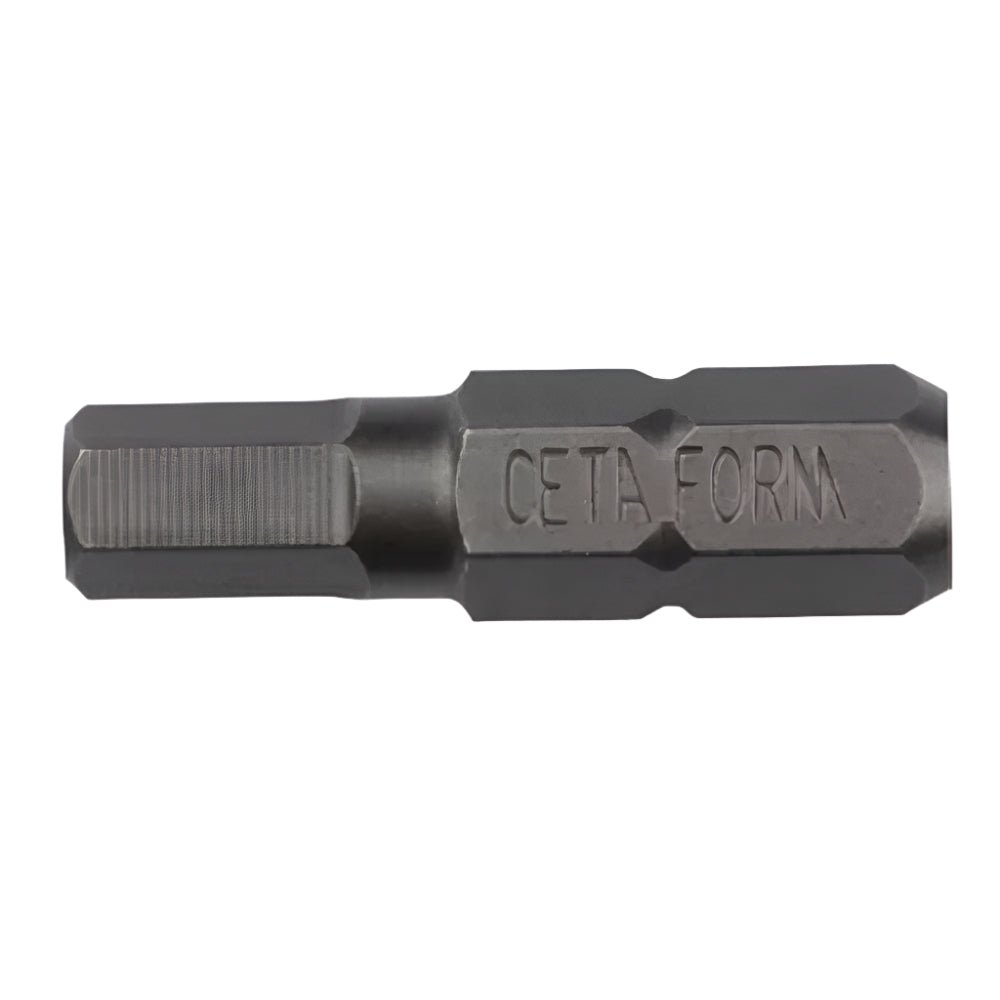 Hexagon Bits SKU: CB/1800 Series Ceta Form Ceta Form Bits and Accessories. A complete range of industrial quality screwdriver bits. Save time and money by utilising Ceta Form high-performance driver bits. Hexagon Bits are available in key sizes with bit holders to match. Sets available for the most common sizes of bits. Product Variations SKU Size (mm) Overall Length (mm) Weight (g) Box Quantity CB/1835 3.5 25 4.6 12
