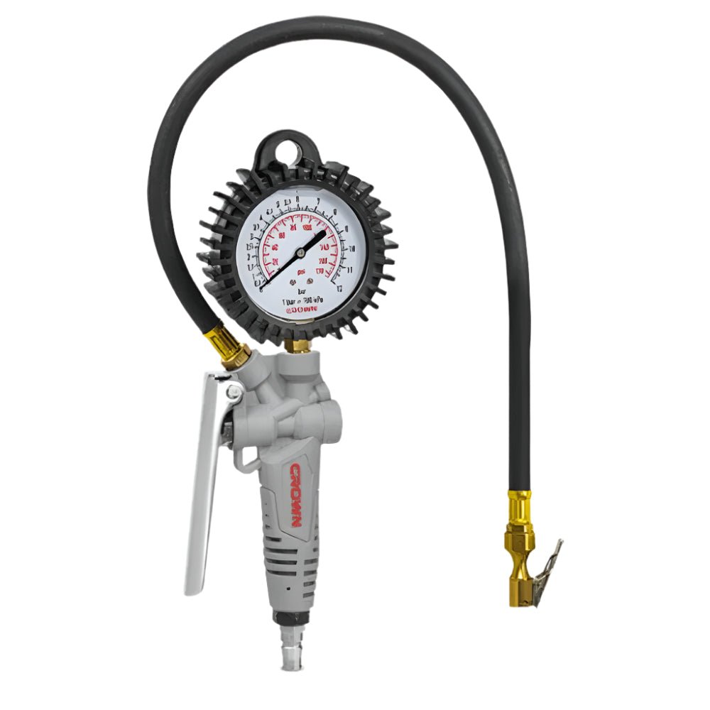 كراون CT38150 مسدس تزويد هواء كراون بعداد جلسرين للكاوتش ضد الصدمات طول الخرطوم : 750 مم ضغط العمل : 0.2-0.6 ميجا باسكال نطاق قياس الضغط : 0-170 رطل / بوصة مربعة خيط موصل الهواء : 1/4 “ رمز المنتج : 8441707508150 التصنيف : وصلات هواء الماركة : كراون بلد المنشا : الصين Technical specifications Working pressure 0-12 bar Gauge pressure range 0-170 psi Thread of air connector 1/4″ Hose length 750 mm