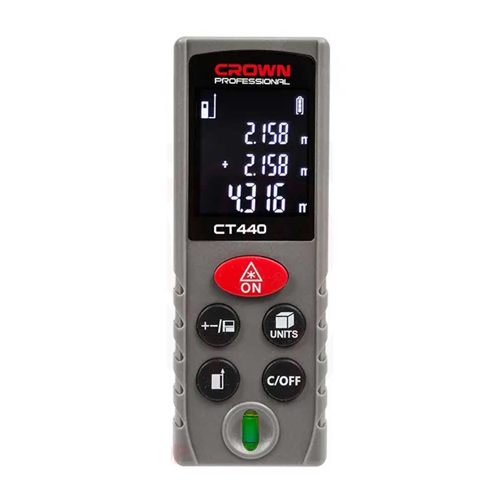 كراون ct44034 جهاز قياس مسافات ليزر 80 متر جهاز قياس مسافات ومساحه وحجم حتى (80 متر) – قياس الطول، تحديد المساحة، احتساب الحجم سهولة الاستعمال في جميع الاستخدامات – وحدة عرض مضاءة وثلاثية السطور لضمان القراءة بكل وضوح – تخزين أوتوماتيكي – وملاءمة لجميع مواقع العمل اسم المنتج جهاز قياس دايود الليزر 635 نانو متر، < 1 ميللي واط نطاق القياس 0,15 – 80,00 فئة الليز 2 دقة القياس، النموذجية ± 2 مم زمن القياس، النموذجي < 0,5 ثانية وقت القياس، الأقصى 4 ث الإمداد بالتيار الكهربائي 2 بطارية 1,5 فولت LR03 ‏‎(AAA)‎ إيقاف الفعالية أوتوماتيكيا 5 الحد الأدنى وحدات القياس م/سم سعة الذاكرة (القيم) 30 مدى البطارية، عدد القياسات حوالي 5000 الوزن 1 كجم الماركة كراون بلد المنشأ الصين الموديل ct44034