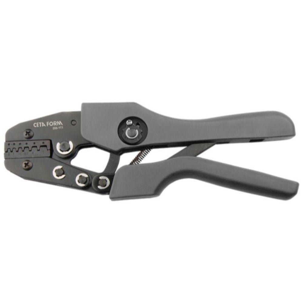 Crimping Pliers (for Insulated Terminals) SKU: E69-YT1 Ceta Form Crimping Pliers (for Insulated Terminals). For crimping insulated terminals, precision crimping dies, self-releasing mechanism Product Variations SKU Max Stripping Capacity (mm^2) Length (mm) Weight (g) Box Quantity E69-YT1 0.5 – 6 220 585 10 Product Description Ceta Form crimping tools for a wide variety of crimping applications, such as non-insulated and insulated terminals, connectors & lugs. Ceta Form Crimping Pliers (for Insulated Terminals). For crimping insulated terminals, precision crimping dies, self-releasing mechanism