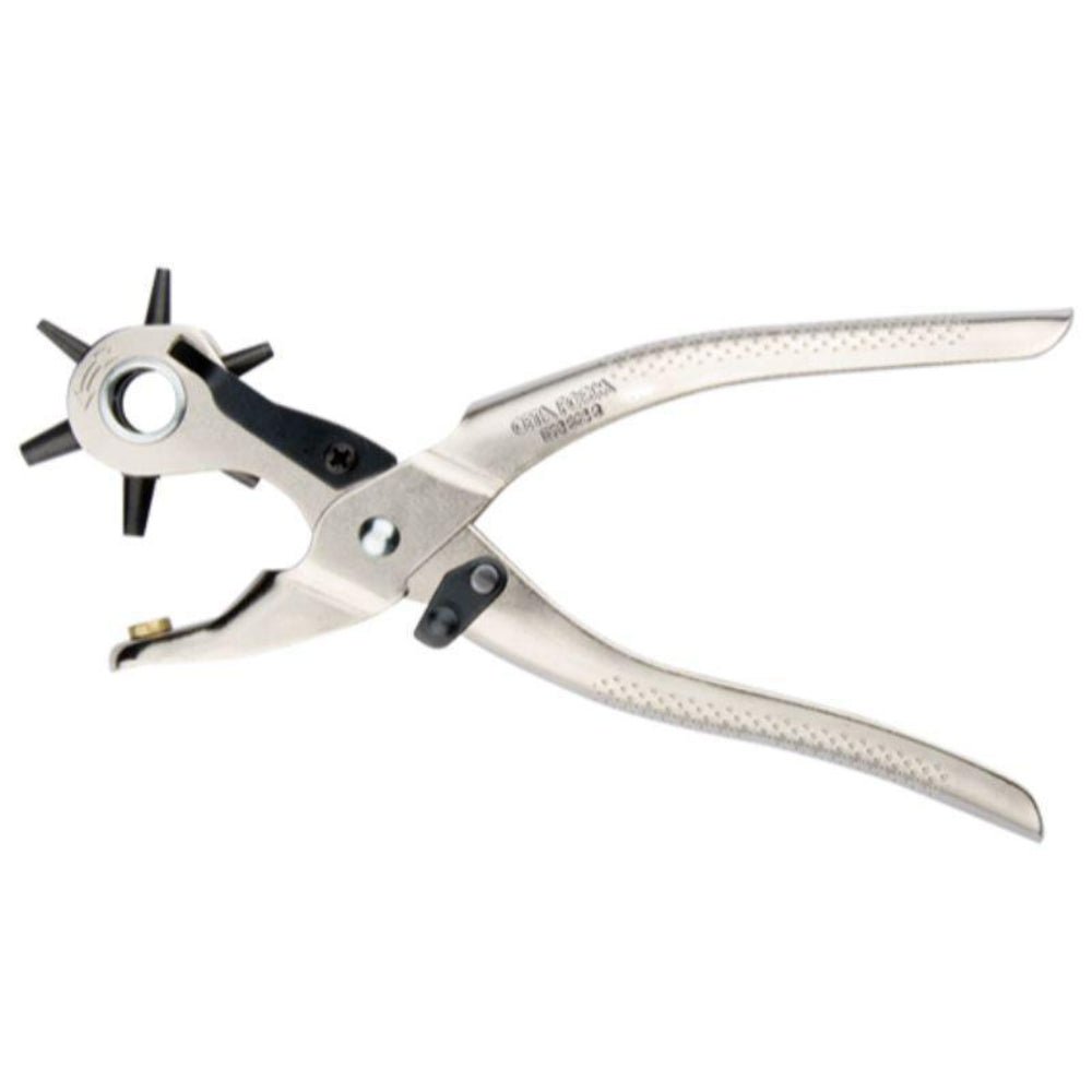 Revolving Punch Pliers (Ø 6 punch) SKU: E70-225-2 Ceta Form Revolving Punch Pliers (Ø 6 punch). For punching holes in leather, textile and plastics, 6 punch sizes in a revolver design Product Variations SKU Max Stripping Capacity (mm^2) Length (mm) Weight (g) Box Quantity E70-225-2 1.5 – 4.1 225 266 6