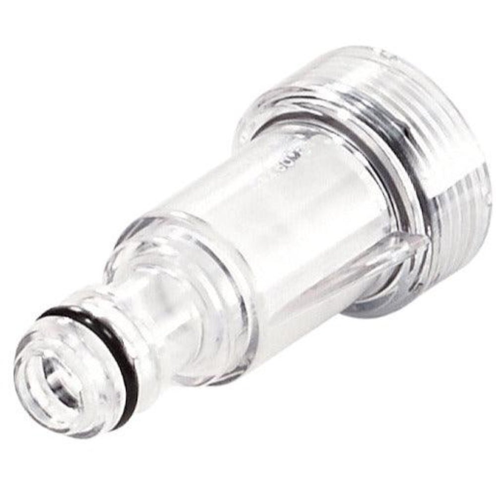 Water filter Protects the high-pressure washer for a longer lifetime Easy to remove and clean for long-term use, protects pump for a longer lifetime Screens out contaminants from the incoming water source Practical transparent plastic makes visual checking easy Directly fits on the tool´s water inlet, universal connection for supply hose Compatible with EasyAquatak, UniversalAquatak, AdvancedAquatak, AQT 33-10, AQT 33-11, AQT 35-12, AQT 37-13, AQT 40-13, AQT 42-13, AQT 45-14 X Tool dimensions (L x W x H) 138 x 67 x 48 mm Weight 0,020 kg Description Filters out small debris and particles to optimise high-pressure washer lifetime The Water Filter provides long-term protection of high-pressure washers. It catches debris, restricting the travel of harmful particles into the pump and hindering potential damage. The filter is easily fitted to the washer’s water inlet and it has a universal connection for supply hoses. Thanks to the transparent cover, it’s easy to see when the filter requires cleaning, which prevents blockages and optimises the pressure washer’s life.
