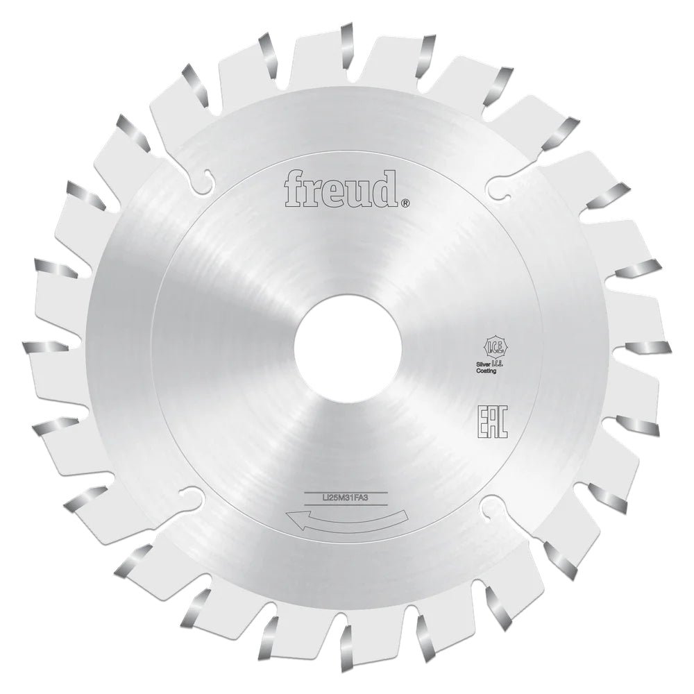 Circular Saw Blade 125×3.1×20 mm 24Teeth 125mm Conical Scoring To score the coating on bilaminated panels. Technical Specifications Diameter 125mm Teeth 24 Arbor 20mm Kerf 4.3-5.5mm Hook Angle 0° Plate 2.2mm Grind Conical