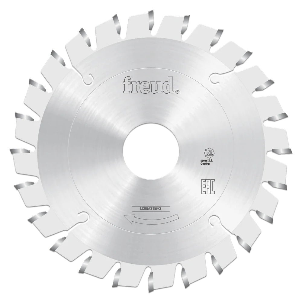 Circular Saw Blade 100×3.1×20 mm 20Teeth 100mm Conical Scoring To score the coating on bilaminated panels. Technical Specifications Diameter 100mm Teeth 24 Arbor 20mm Kerf 3.1-4.3mm Hook Angle 0° Plate 2.2mm Grind Conical