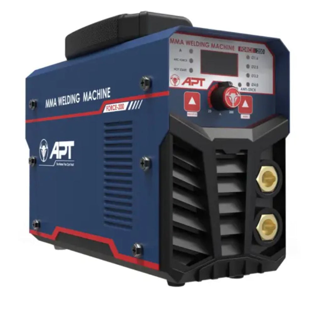 ماكينة لحام ديجيتال A160_V220 شنطة APT Force-200 FORCE MMA Inverter Welding Machine FORCE Product Code Main Voltage (AC) Frequency (Hz) Input Capacity (KVA) No Load Voltage (V) Welding Current (A) Duty Cycle (%) Electrode (mm) Insulation Class Protection Degree (IP) Dimension (mm) Weight (Kg) FORCE-200 Single phase 220V 50/60 4.9 65 20-160 60 1.6-4.0 F IP21S 380×230×260 3.5