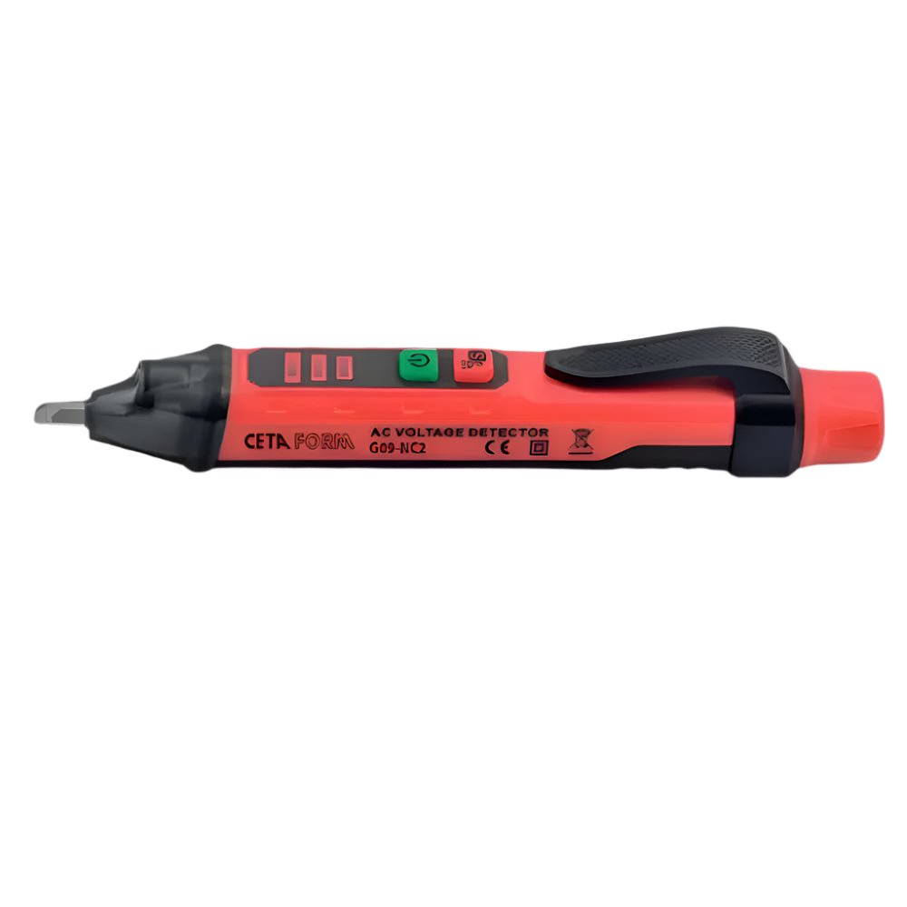 Ceta Form Non-Contact AC Tester Pen (48V – 1000V AC) Brand CETA FORM Category Hand Tools Stock Code G09-NC2 Ceta Form Non-Contact AC Tester Pen is ideal for safe and fast voltage detection in electrical circuits. It prioritizes safety by detecting voltages in the range of 48V – 1000V AC without contact. You can always carry it with you with its practical pocket clip and durable structure. It offers easy use even in dark environments thanks to its LED light and audible warning system. It is an indispensable tool for electricians, technicians and home users. Trust Ceta Form for fast and safe voltage detection.