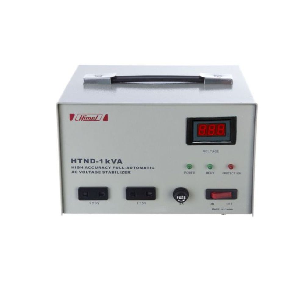 Himel 1 kVA Voltage Stabilizer, HTND, Europe Type Plug, 230 V Output, Digital Meter Quick Overview Range of product : HTND Technology type : Servo motor Rated power in VA: 1 kVA Outlet standard : European Output voltage : 230 V Input voltage limits : 160…240 V Response time: 1 s Efficiency: 92 % Input voltage limits: 160…240 V Protection type: Overvoltage & Short-circuit Network frequency 50/60 Hz Mounting mode Desktop installation Ambient air temperature for operation -5…40 °C Relative humidity 0…90 % Humidity storage 0…90 % Operating altitude 0…2000 m Storage altitude 0…2000 m Standards EN 61000-6-2 EN 61000-6-4 EN 61558-1 Product certifications CE Load Type Recommended Stabilizer Power (KVA) Air Conditioner 1.5 HP 5 Air Conditioner 2.25 HP 7.5 Air Conditioner 3 HP 10 Air Conditioner 4 HP 15 Air Conditioner 5 HP 20 Refrigerator/Fridge (normal size) 1 computer 1 Washing machine 3 Lap top 0.5 More Information Weight 10.000000 Brand Himel Model HTND1HE230E Country of Manufacture China Depth [cm] 19 Width [cm] 20.5 Height [cm] 15.5 Range HTND Rated Power in VA 1kVA Connection Type Europe Plug Technology Servo Motor Input Voltage 140…250 V Output Voltage 230 V Mounting Mode Desktop Installation