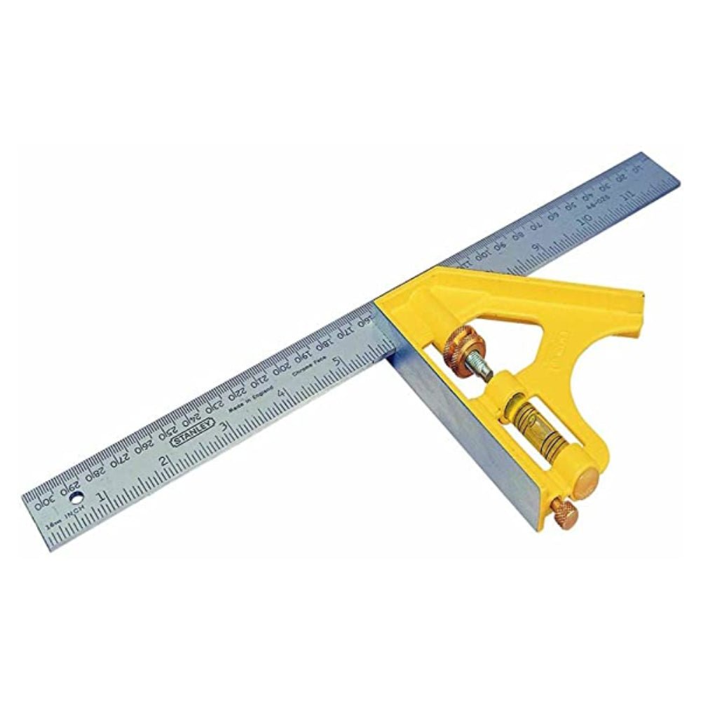 COMBINATION SQUARE 12″ M/E BL Durably etched, hard-chrome-plated blades are rust resistant and made to last 12″ square has precision-machined working surfaces for improved accuracy Built-in scriber comes in handy for surface marking Product Overview Durably etched, hard-chrome-plated blades are rust resistant and made to last. The STANLEY® 12 in. Blade Combination Square has precision-machined working surfaces for improved accuracy. Built-in scriber comes in handy for surface marking. Easy-to-read vial. High-visibility yellow, die-cast handle with brass hardware for durability. Additional Features Easy-to-read vial High-visibility yellow, die-cast handle with brass hardware for durability Specifications Product Length [Imperial] 0.306 in Blade Length [Imperial] 12 in Product Width [Imperial] 0.141 in Product Height [Imperial] 0.018 in Blade Length [Metric] 305 mm Number of Pieces 1