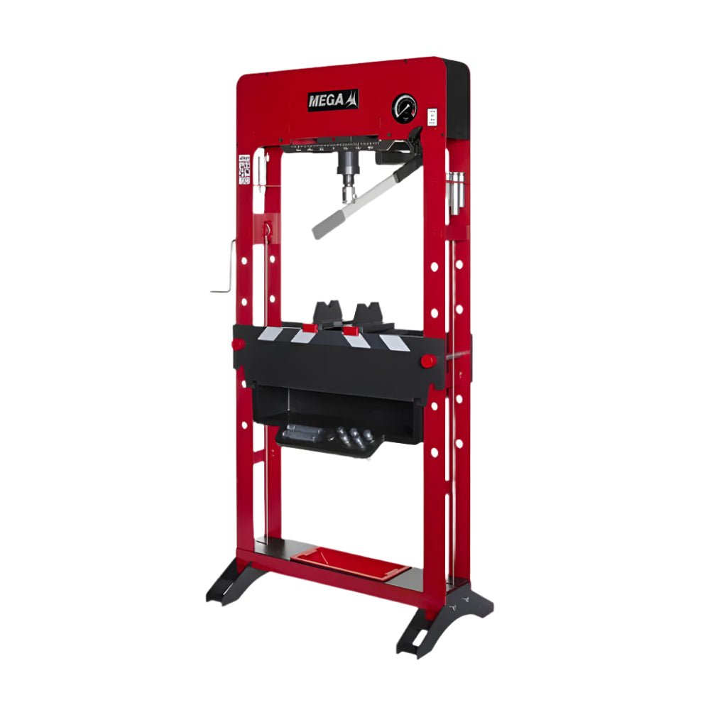 مكبس هيدروليك سليندر 2 بستم 50 طن ميجا إسباني وصـــــف المنتج تصميم مدمج وعملي يدمج جميع العناصر الهيدروليكية داخل الهيكل ، ويوفر توفيرًا في مساحة ورشة العمل ويضمن الحماية أثناء النقل. خيارات مختلفة للمضخة: مضخات مفردة أو ثنائية يدوية ، يدوية هوائية وكهربائية ، حسب سرعة العمل المطلوبة. انزلاق الاسطوانة على طول الرأس في نماذج PRD_D. ونش للمساعدة في تحديد موقع طاولة العمل بسهولة وسرعة. مقياس ضغط محمي داخل الإطار. يتم وضعه على مستوى العين للمساعدة في القراءة السهلة. مجموعة من كتلتين على شكل “V” متضمنة وأرجل مع فتحات لتثبيتها على الأرض. منضدة قابلة للتعديل للارتفاع. تمديد المسمار اليدوي من أجل التقارب السريع والتعديل الدقيق. رجوع أوتوماتيكي لنابض المكبس. – المواصفات الفنية العلامة التجارية MEGA كود المنتج PRD50 قدرة الضغط 50 طن إبعاد المنتج – الوزن التقريبي 191 كجم بلد المنشأ اسبانيا CHARACTERISTICS Compact and functional design that integrates all the hydraulic elements within the chassis, provides a saving in the workshop space and ensures protection in transport. Different pump options: single or two spped manual, manual-pneumatic and electric pumps, depending on the working speed required. Sliding cylinder all along the head on PRD_D models. Winch to assist easy and quick positioning of the workbench. Pressure gauge protected inside the frame. It is positioning at eye level to assist for easy reading. Set of two “V” blocks included and legs with boltholes for fixing to the floor. Workbench adjustable for height. Manual screw extension for quick aproach and fine adjustment. Au
