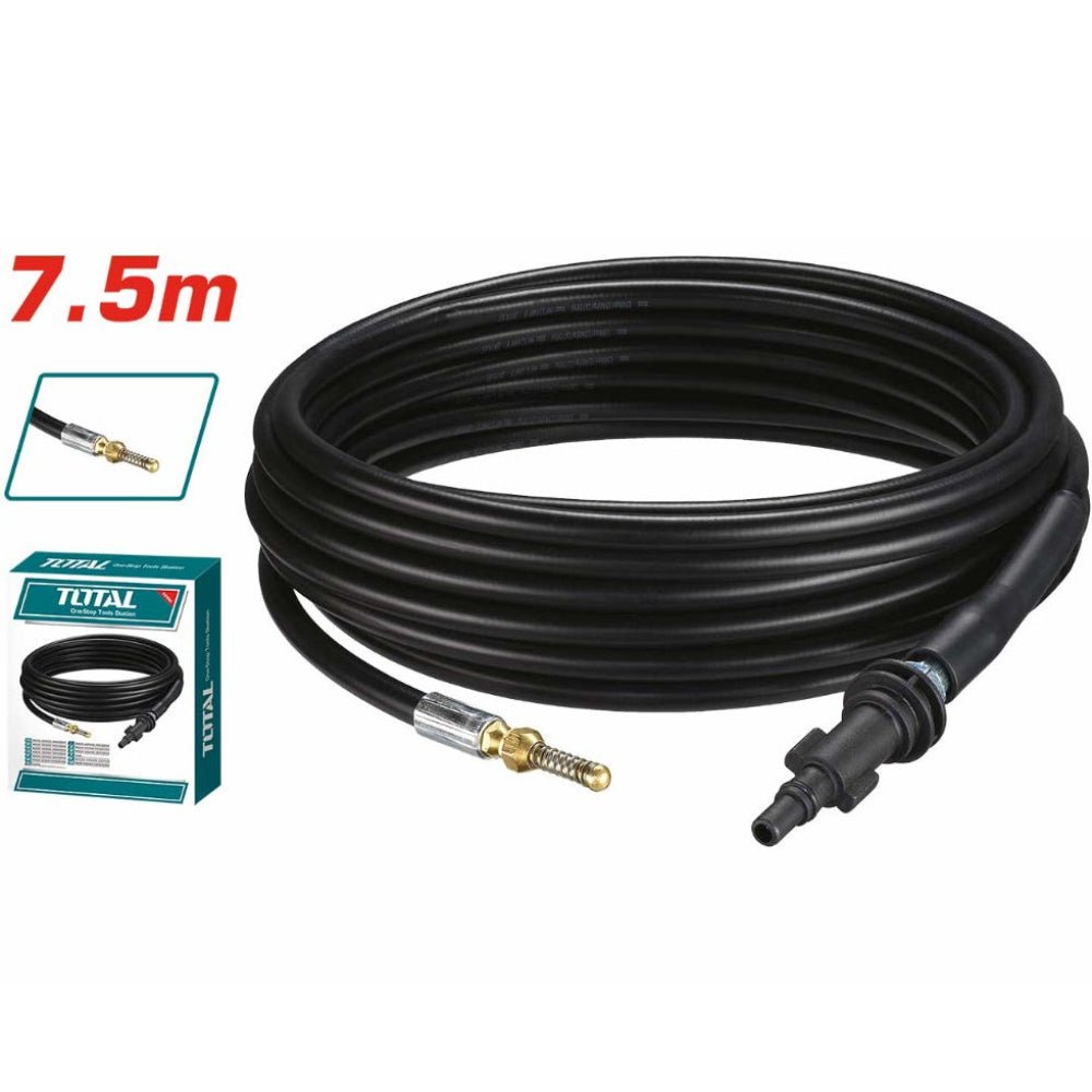 TGTPCH751 Pipe Cleaning Hose For High Pressure Washer with spring head. Length:7.5m Max pressure:150bar(2175psi) With spring head Suitable for TGT11316 TGT11356 TGT11226 UTGT11316 UTGT11356 Packed by color box