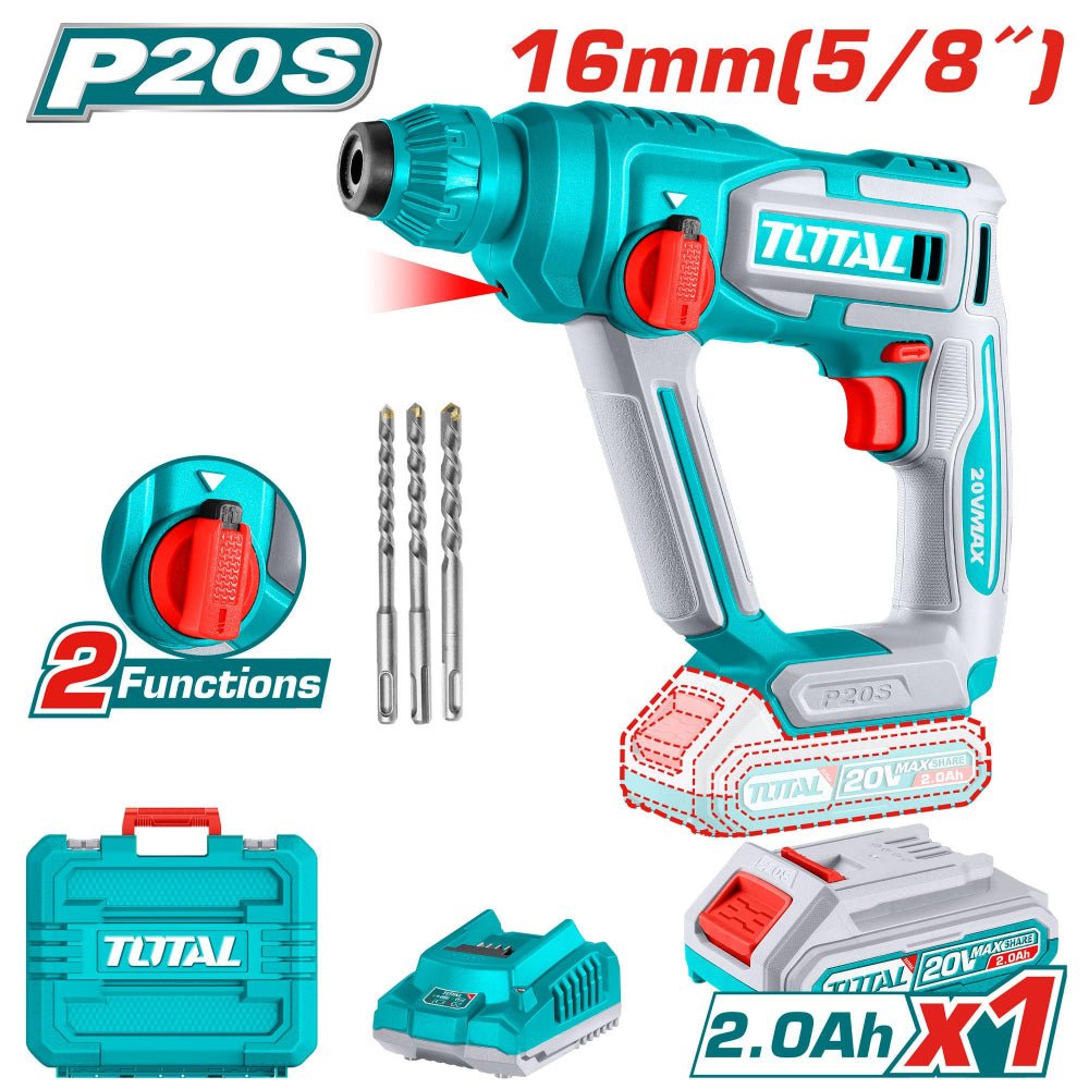 TRHLI201681 Cordless rotary hammer Voltage:20V No-load speed:0-900rpm Impact rate:0-5100bpm Voltage:20V No-load speed:0-850rpm Impact rate:0-5100bpm Impact energy:1.5J Max drilling capacity:Φ16 in concrete SDS plus chuck system Integrated LED work light Include: 3 Pcs drills 1 Pcs 2.0Ah battery pack(TFBLI20011) 1 Pcs charger(TFCLI2001) Charge volts: 220-240V~50/60Hz Packed by carrying case