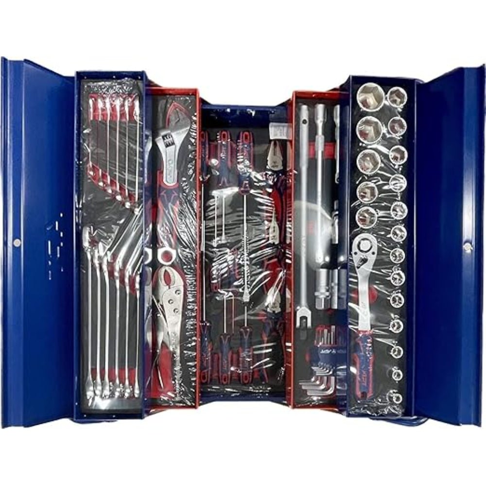 ايه بى تى TS-59 شنطه عده صاج 5 درج بالعده 59 قطعه اسم المنتج شنطه عده صاج درج 5 درج العدد 59 قطعه طقم مفكات 8 قطع طقم بنسه-زراديه-قصافه 3 قطع طقم مفتاح بلدي مشرشر 12 قطعة كلابه مفتاح فرنساوي طقم لقم رباط ويد سيستيم طقم الانكيه الماركة ايه بى تى بلد المنشأ الصين الموديل TS-59